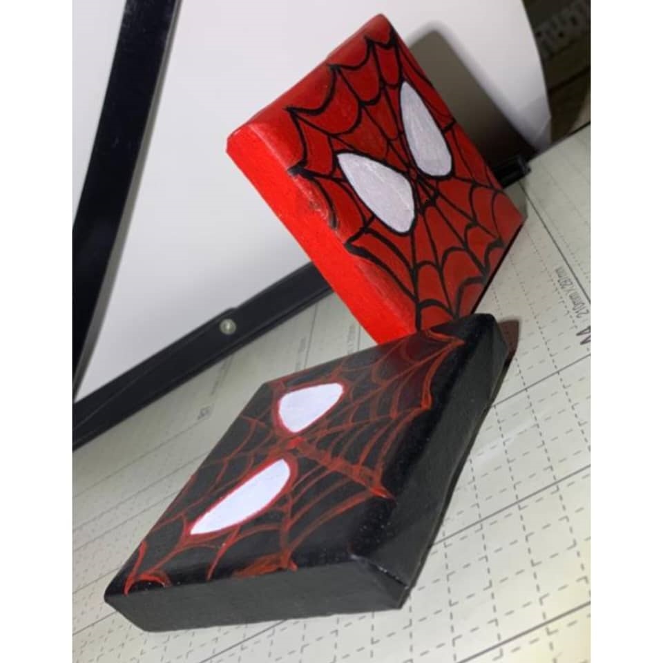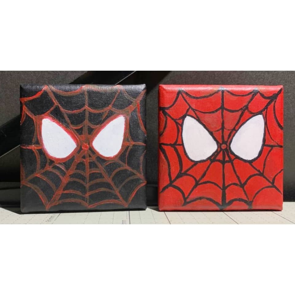 پک 2 عددی نقاشی روی بوم طرح مرد عنکبوتی/سایز 10 در 10 در 1.5 سانت (اکریلیک - قرمز مشکی)